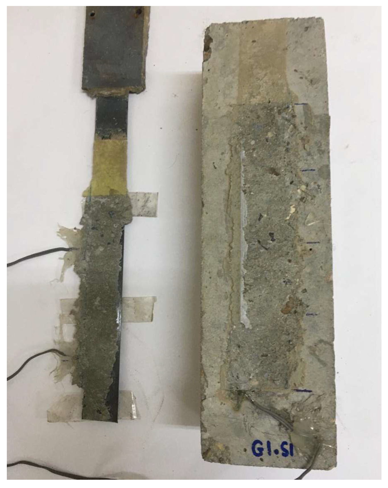 Figure 10). This mainly indicate that the weak point of debonding is the interface between concrete and adhesive due detachment of a thin layer from the concrete surface