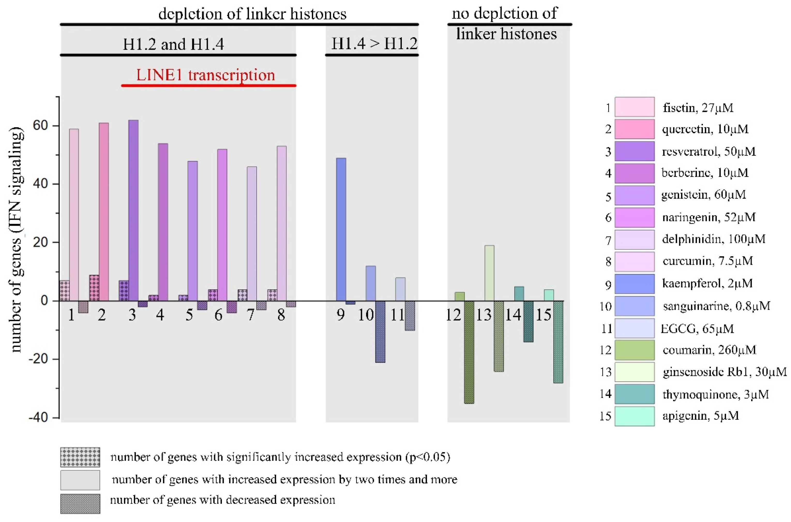 - Izquierdo-Bouldstridge, A., Bustillos, A., Bonet-Costa, C. et al. Histone H1 depletion triggers an interferon response in cancer cells via activation of heterochromatic repeats. Nucleic Acids Research. 2017. 45, 20, 11622. [CrossRef]