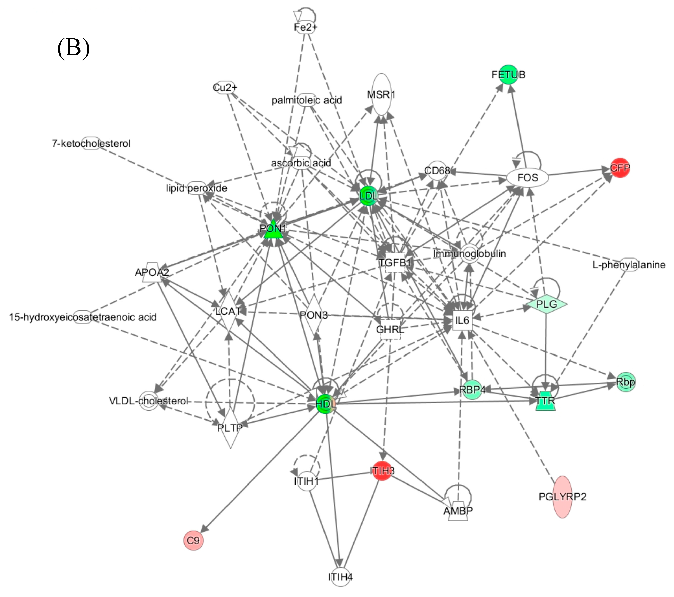 Lipoprotein metabolism (n=4): ↓Afm, ↑ApoD, ↑ApoM, ↑Lcat |