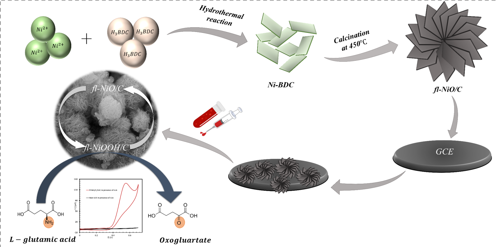 - Alizadeh, Z.; Mazloum-Ardakani, M.; Asadpour, F.; Yavari, M. Highly Efficient Enzyme-Free Glutamate Sensors Using Porous Network Metal–Organic Framework-Ni-NiO-Ni-Carbon Nanocomposites. ACS Appl. Mater. Interfaces 2023, 15, 59246–59257. [Google Scholar] [CrossRef]
