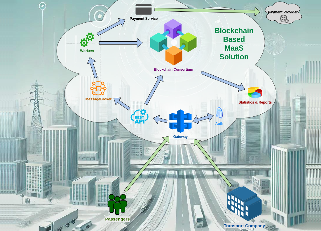 MaaS systems face several challenges, including security vulnerabilities, scalability issues, and inefficiencies. Our proposed blockchain-based platform directly addresses these concerns by creating a decentralized, secure, and scalable solution for urban mobility. Utilizing Hyperledger Fabric’s permissioned architecture and modular consensus mechanisms, the platform significantly boosts data security and transaction speeds, delivering reliable performance even under varying loads. Initially, the platform will focus on passenger transport, but future research will extend its application to freight logistics. This aligns with the DELPHI project’s broader objective of developing a unified and efficient transportation ecosystem.