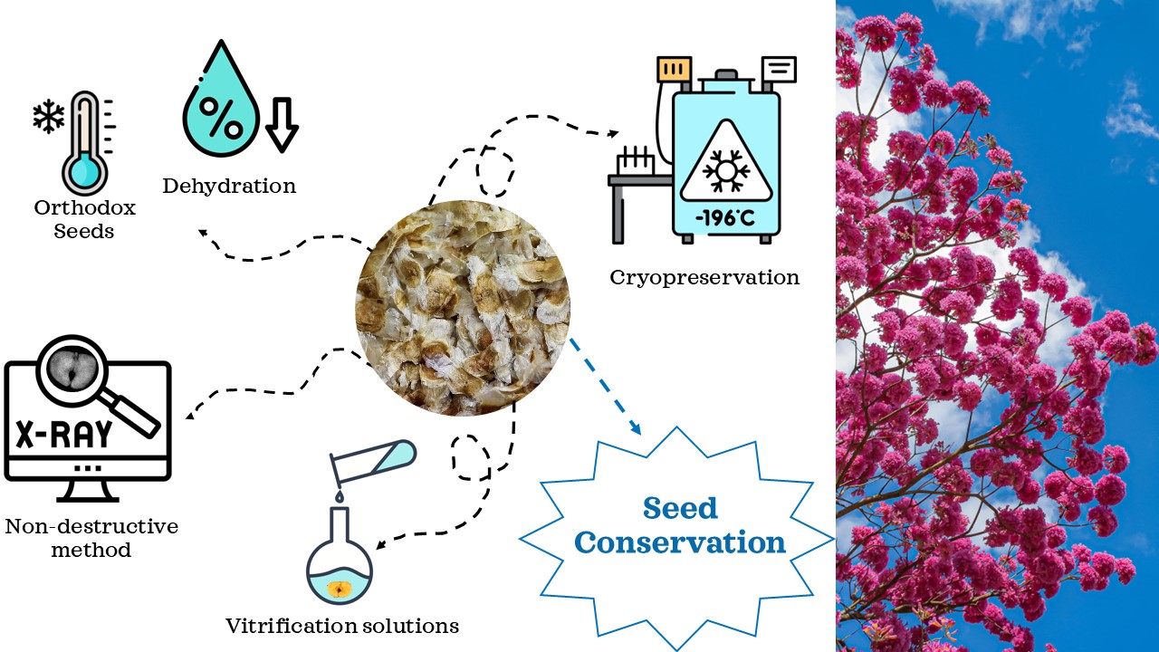 - Silva, J. D. J.; Alencar, S. D. S.; Gomes, R. A.; Matias, J. R.; Pelacani, C. R.; Dantas, B. F. Conservation and physiological quality of Handroanthus spongiosus (Rizzini) S. Grose (Bignoniaceae) seeds. Journal of Seed Science 2022, 44, e202244007. [Google Scholar] [CrossRef]
