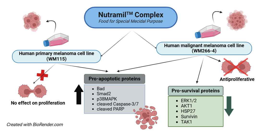 - Koronowicz AA, Drozdowska M, Wielgos B, Piasna-Słupecka E, Domagała D, Dulińska-Litewka J, Leszczyńska T. The effect of “NutramilTM Complex”, food for special medical purpose, on breast and prostate carcinoma cells. PLOS ONE 2018;13: e0192860. [CrossRef]
