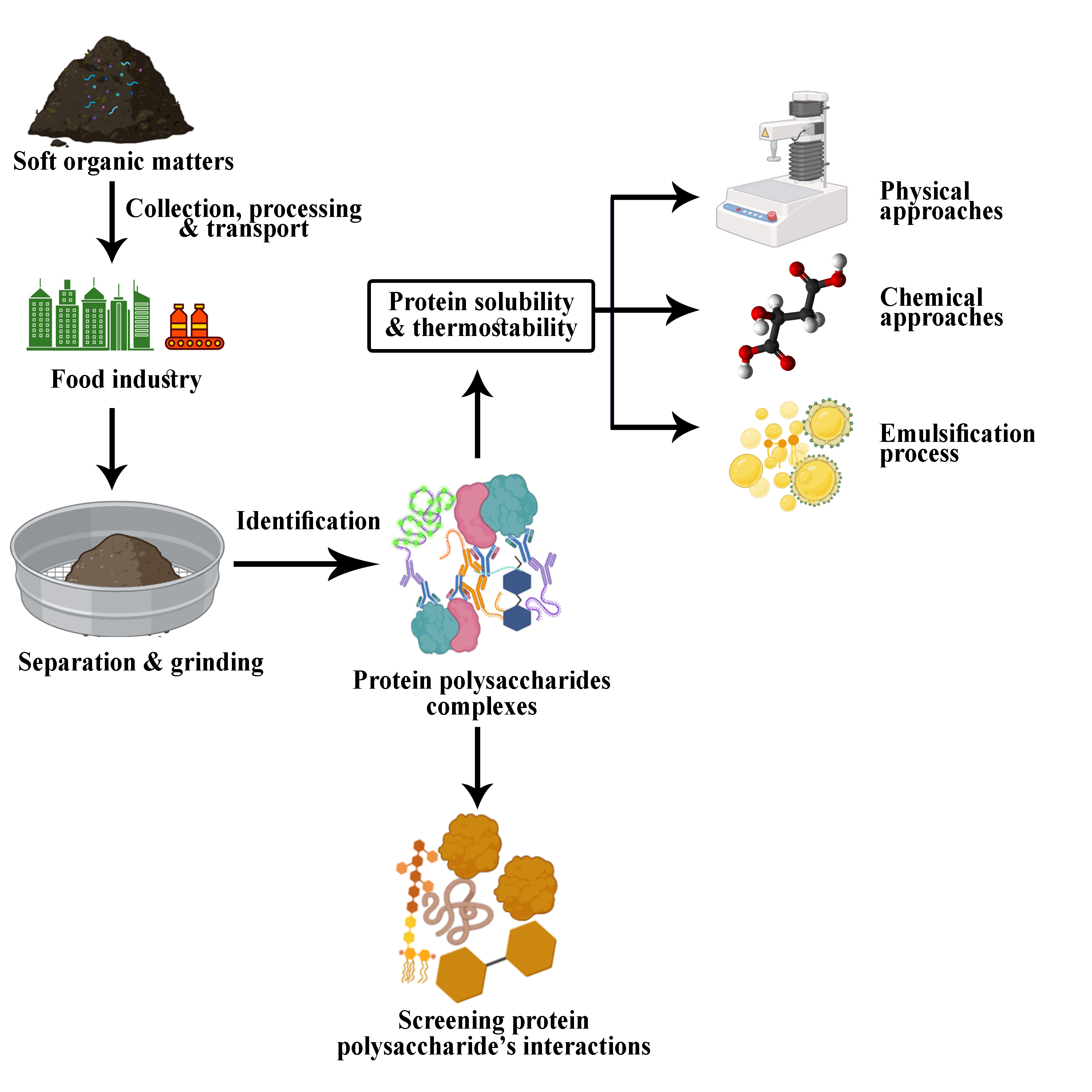 Moreover, the combination of proteins with hydrophilic non-ionic polysaccharides has demonstrated enhanced solubility and stability of proteins in challenging aqueous environments [31]. Environmental factors, including temperature, pH, and ionic strength, critically influence the physical assembly of these biopolymers, thus shaping their physicochemical properties and functional efficacy. This intricate interplay highlights the necessity for ongoing research to fully exploit the potential of protein-polysaccharide interactions in innovative applications [33].