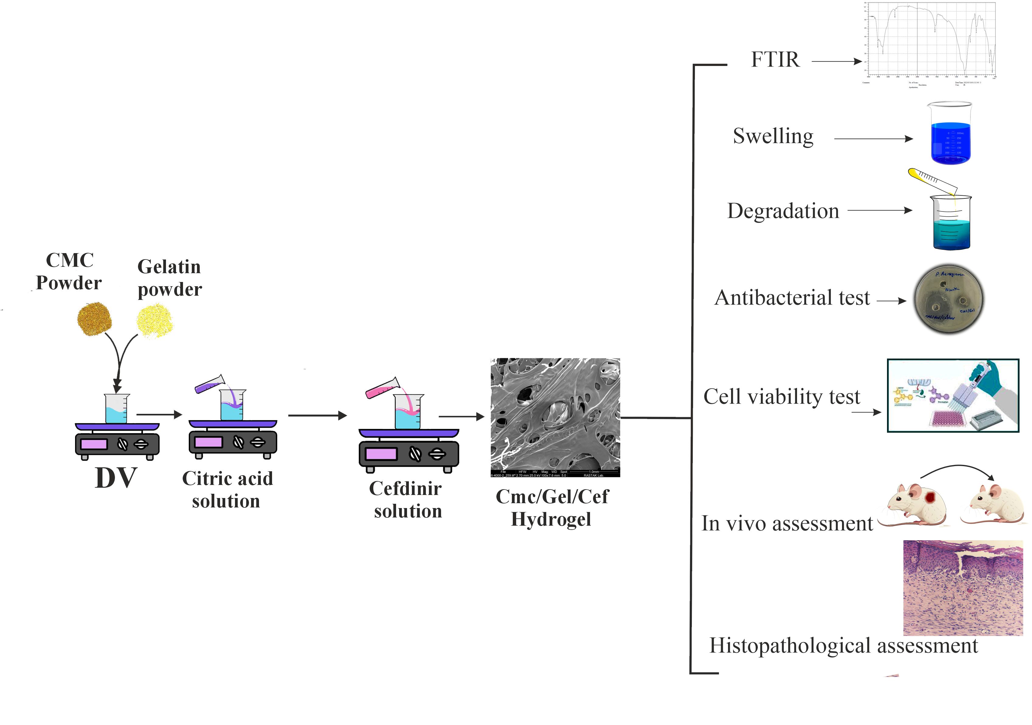2.2. Synthesis of CMC/Gel and CMC/Gel/Cef Hydrogels