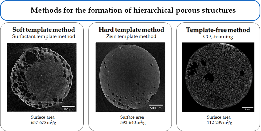 Numerous methods for forming hierarchical porous structures are described in the scientific and technical literature, which can be broadly divided into three categories [