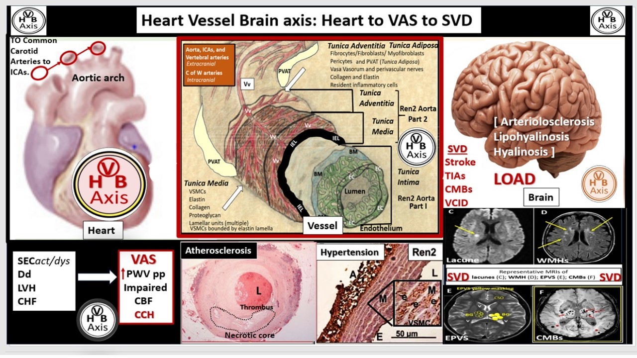 The damaging effects of increased pulsatile pulse pressure (pp) due to VAS is known to be one of the many injurious stimuli to both the systemic and brain endothelial cells (SECs, BECs respectively), which result in the development of SVD, neurodegeneration, and LOAD to support a heart-vessel-brain (HVB) axis (
