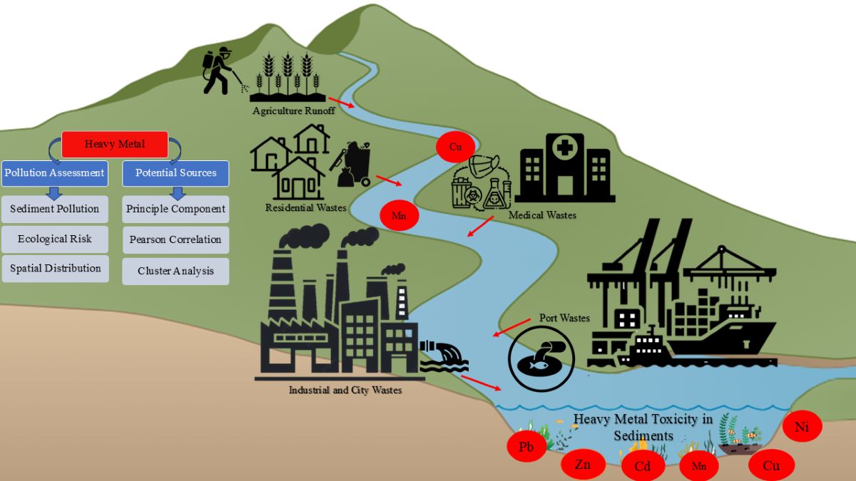 Toxic metal exposure in aquatic environments has attracted attention from all over the world in recent years due to its persistence, potentially rising levels, and environmental toxicity (Gopal et al., 2023; Siddique et al., 2020). Around the world, a lot of dangerous substances, especially heavy metals (HMs), get released into rivers as a result of industrial processes, atmospheric precipitation, fast population expansion, and other man-made and natural activities. These pollutants can be transported through water and accumulate in riverbed sediments, posing risks to aquatic ecosystems and human health (Ke et al., 2017; Usman et al., 2020; Xu et al., 2020). Moreover, dumping untreated household and commercial waste into rivers significantly increases metal concentrations in sediments, further contributing to issues with water quality (Dey et al., 2021; Yuksel et al., 2023).