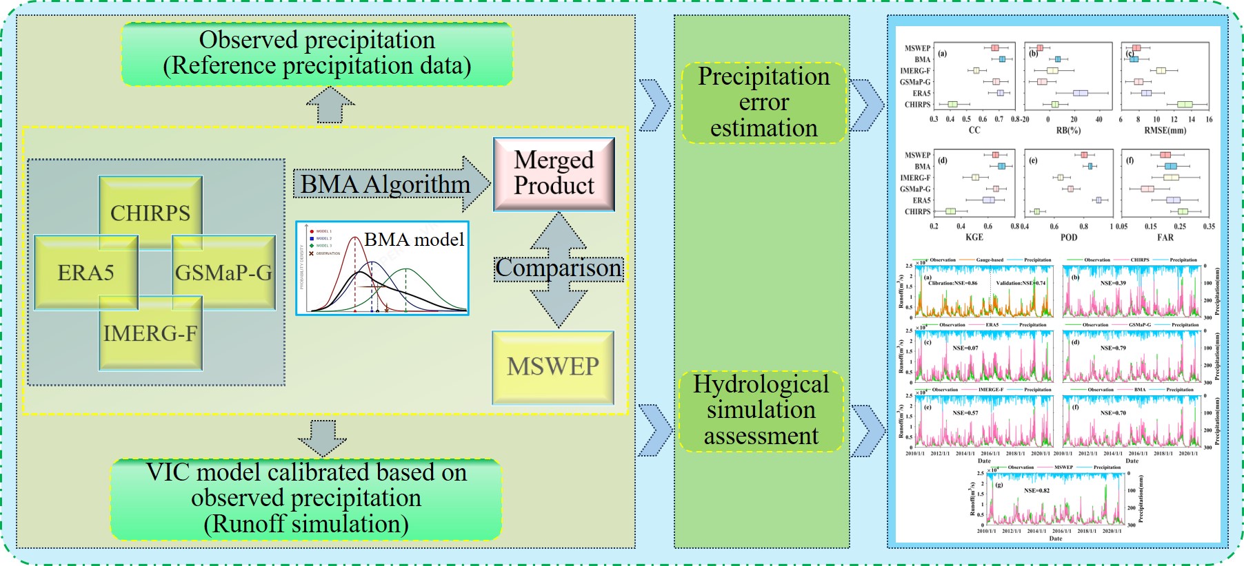 In this study, the BMA method is employed to merge four precipitation products into a unified daily precipitation dataset. The performance of this merged product is systematically evaluated and compared in