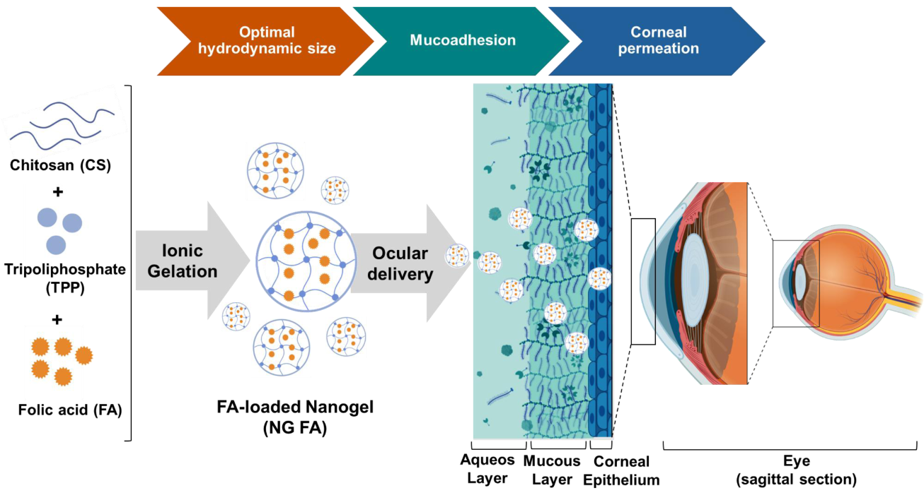 21]. In this context, the present study investigates the potential of FA-loaded NGs to enhance precorneal residence time, incorporating comprehensive physicochemical and biopharmaceutical characterization to assess their efficacy.
