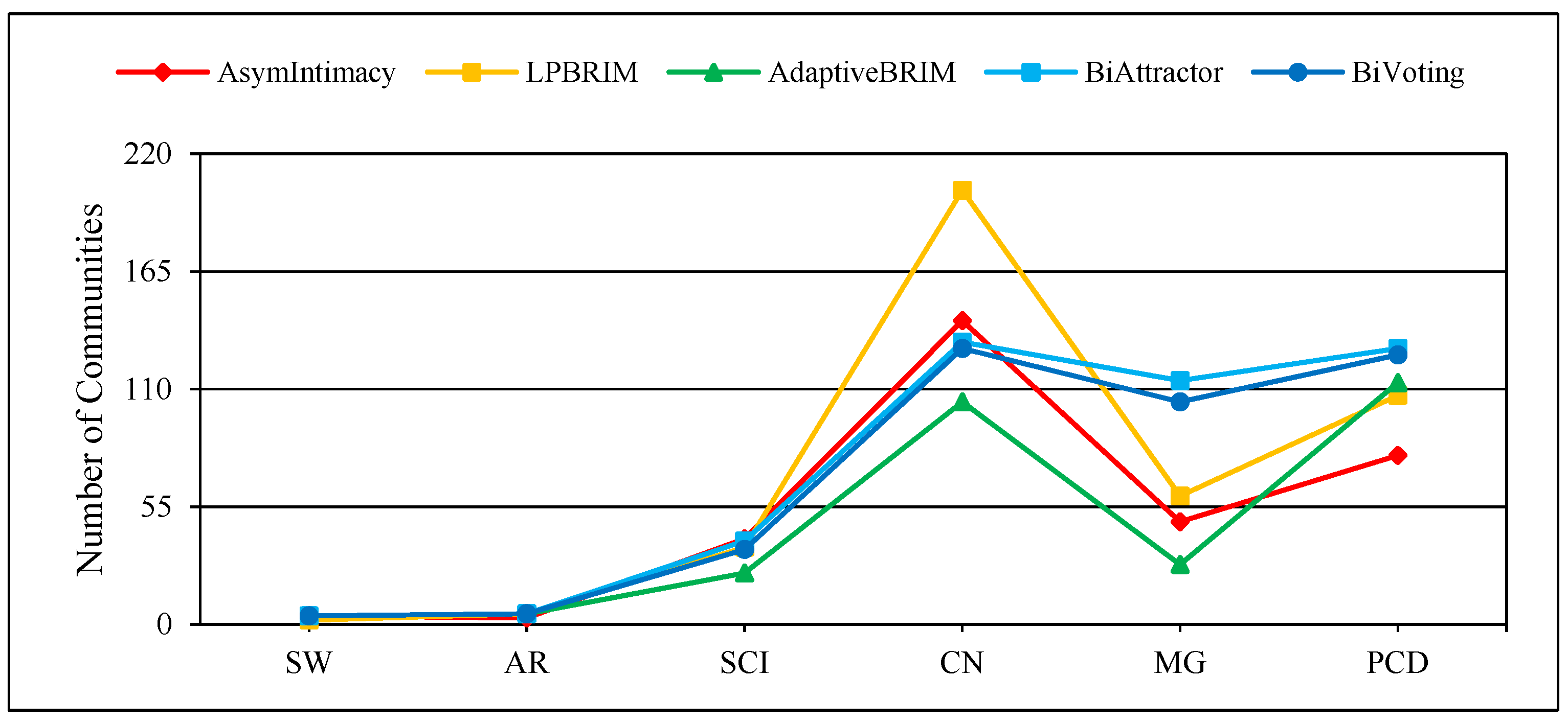 represents the total number of communities detected, respectively. The results show that the proposed method, like BiAttractor, can accurately detect the number of communities despite calculating a lower NMI value, which is due to the ability of BiVoting to accurately replicate the voting process. It should be noted that as the biclique size increases, the calculated NMI value gradually approaches the best value. These observations confirm that Bivoting outperforms other methods.