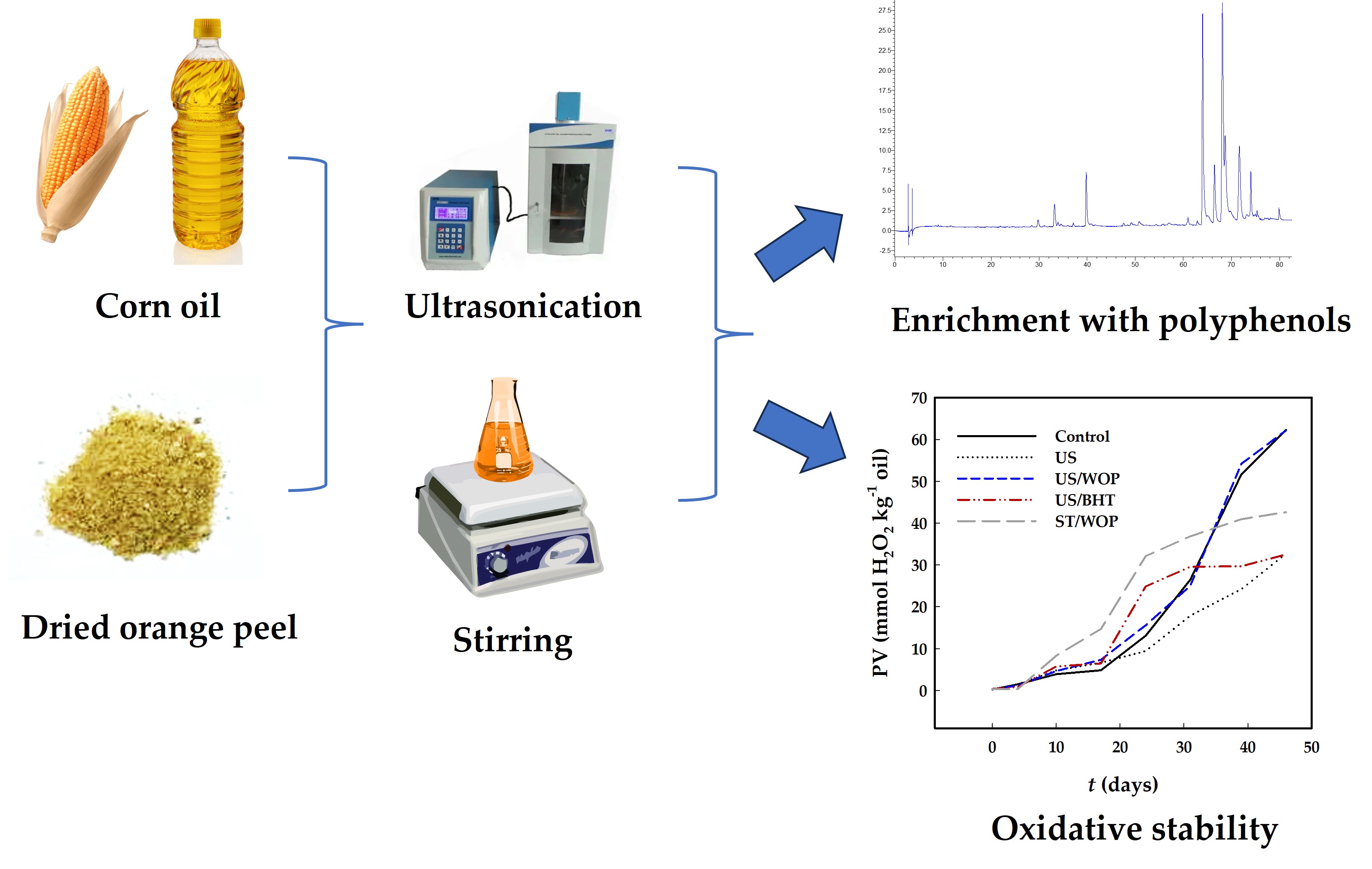 - Kalompatsios, D.; Athanasiadis, V.; Chatzimitakos, T.; Palaiogiannis, D.; Lalas, S. I.; Makris, D. P. Sustainable exploitation of waste orange peels: enrichment of commercial seed oils and the effect on their oxidative stability. Waste 2023, 1, 761–774. [Google Scholar] [CrossRef]