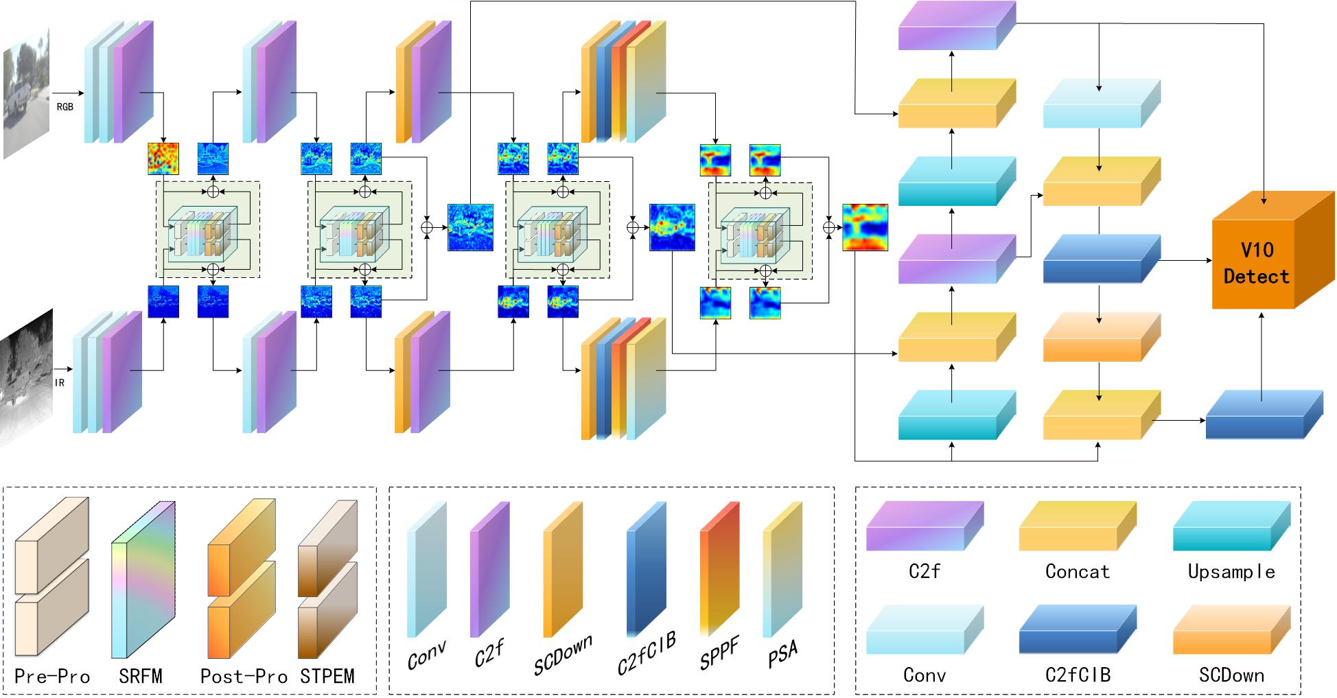 The SHPA architecture, as the core design of this algorithm, effectively processes visible and infrared spectral domain information through a dual-stream structure, laying the foundation for hierarchical perception and fusion of multi-scale features. This architecture is based on YOLOv10's excellent features and has been systematically improved for multi-modal perception.