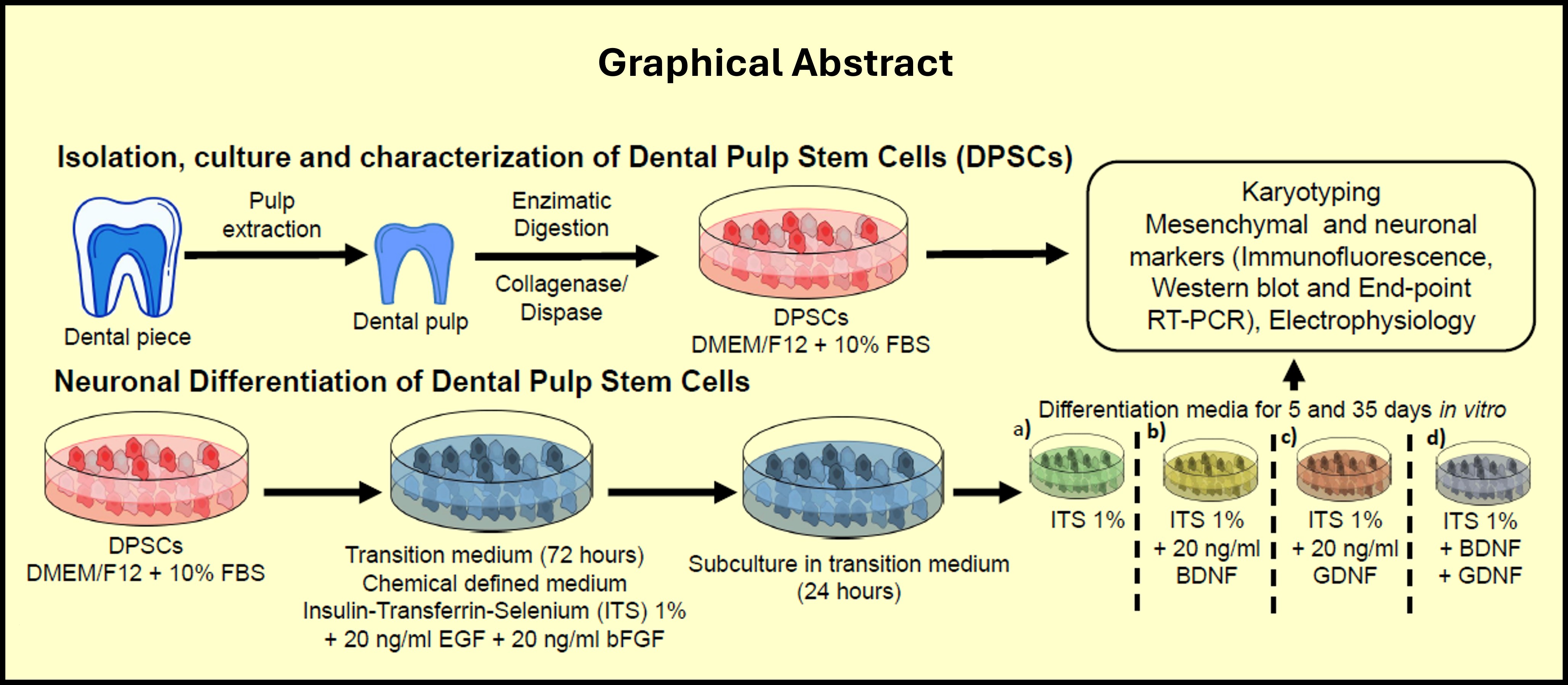 41]. In addition to the expression of neural markers by DPSCs, several studies indicate the production and secretion of neurotrophic factors such as BDNF, GDNF, and nerve growth factor (NGF) [
