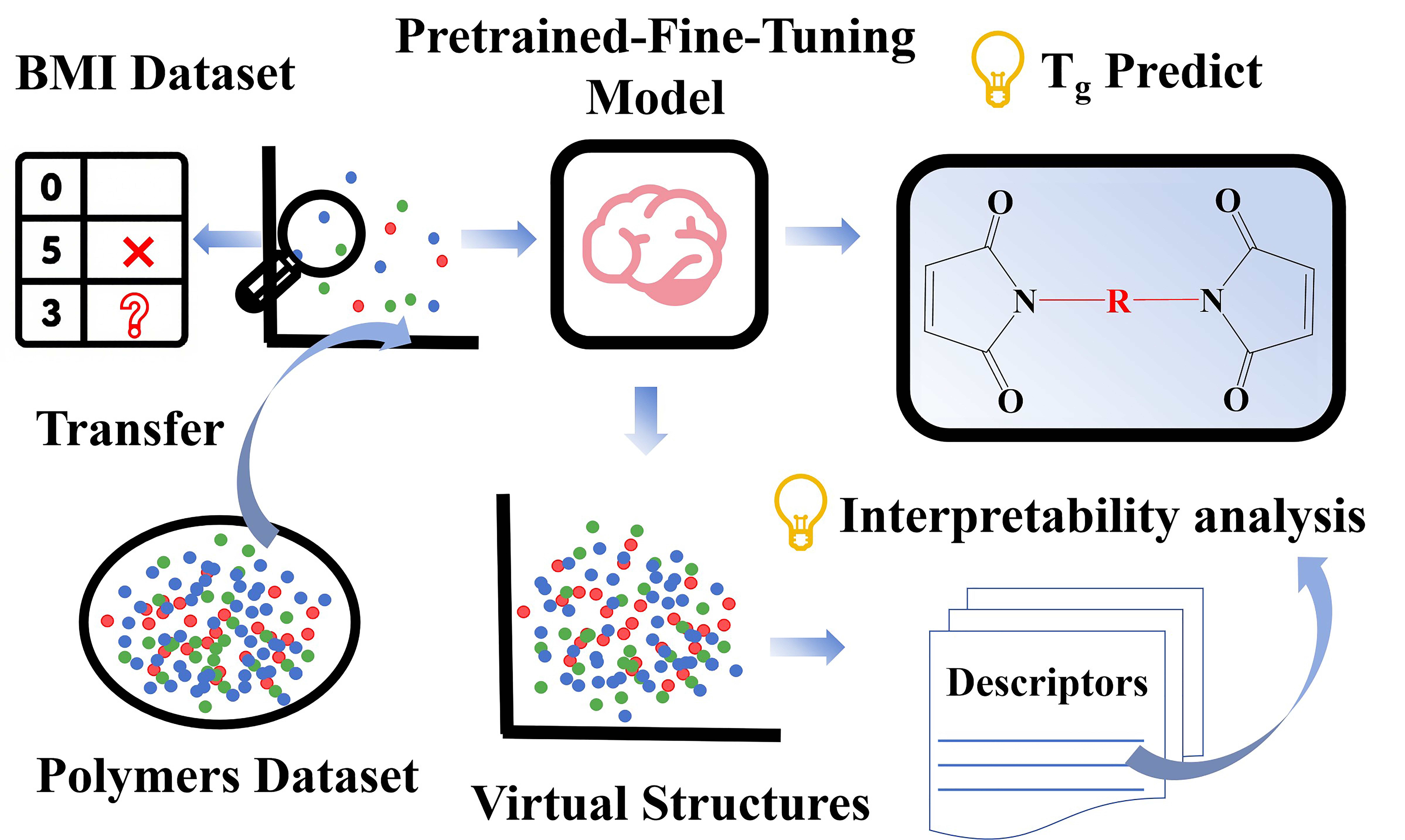 - Zhang, H.; Li, H.; Xin, H.; Zhang, J. Property Prediction and Structural Feature Extraction of Polyimide Materials Based on Machine Learning. Journal of Chemical Information and Modeling 2023, 63, 5473–5483. [Google Scholar] [CrossRef]