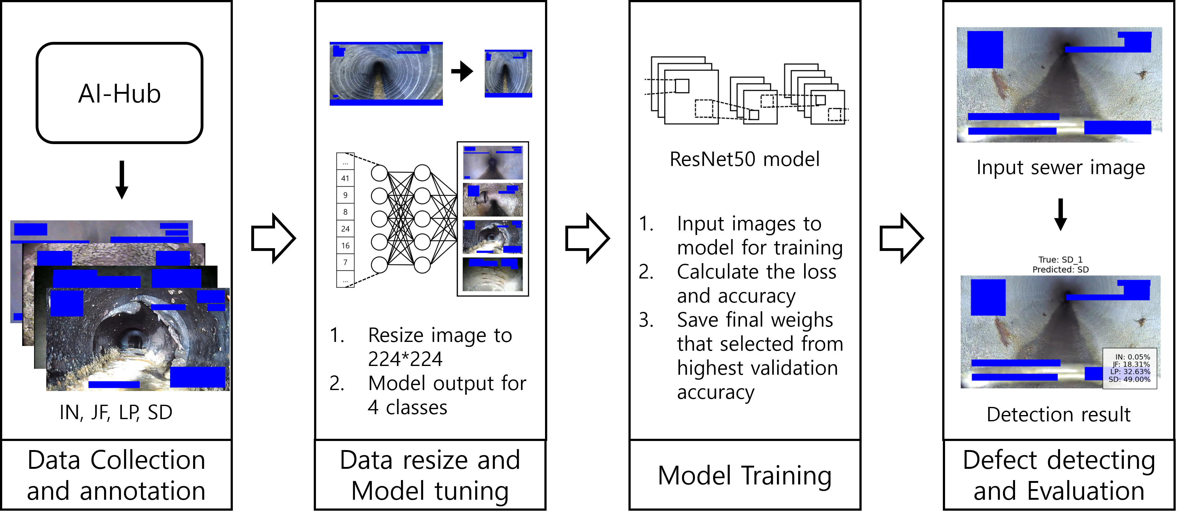 - Yin, X.; Chen, Y.; Bouferguene, A.; Zaman, H.; Al-Hussein, M.; Kurach, L. A deep learning-based framework for an automated defect detection system for sewer pipes. Autom. Constr. 2020, 109, 102967. [Google Scholar] [CrossRef]