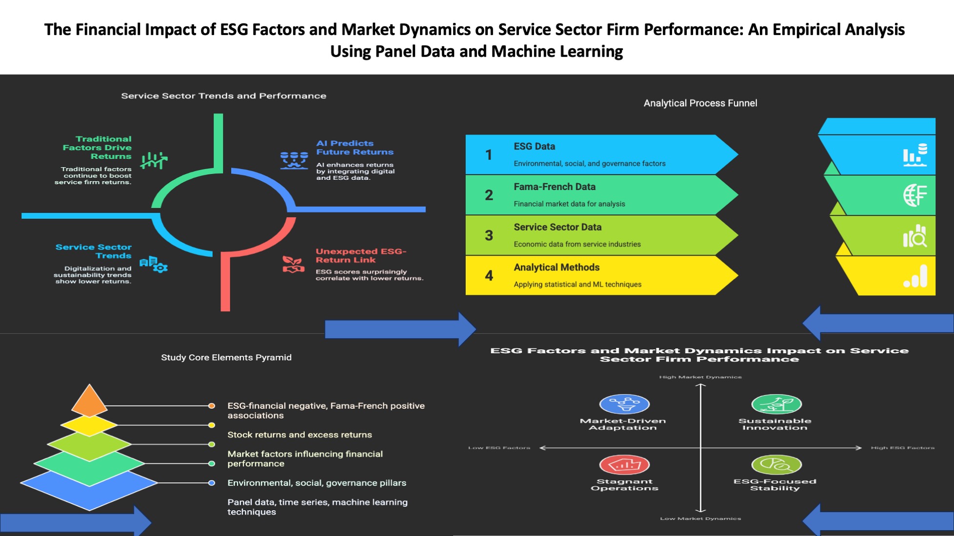 The most significant limitation of this study is the very small sample size (14 unique firms) and limited time series (10 years). This severely restricts the generalizability and statistical power of all models, especially the ML models and time series analysis. Results should, therefore, be interpreted as exploratory. While comprehensive, the ESG data relies on Refinitiv's scoring methodology, which might not capture all nuances relevant to the diverse service sector's specific impact. The chosen firms are primarily categorized under "Commercial Services & Supplies," which is a broad category, and findings might not apply uniformly across all service sub-sectors. Some econometric models rely on assumptions (e.g., adequate sample size for GARCH) that might be challenged by small samples. Furthermore, while panel data helps control for unobserved firm-specific effects, establishing definitive causality in the ESG-performance relationship is complex due to potential endogeneity. Finally, the study quantifies ESG and financial factors, but does not directly measure the financial impact of every "key trend" (e.g., specific AI adoption rates, detailed customer experience metrics), limiting the scope of a comprehensive analysis on all listed trends.