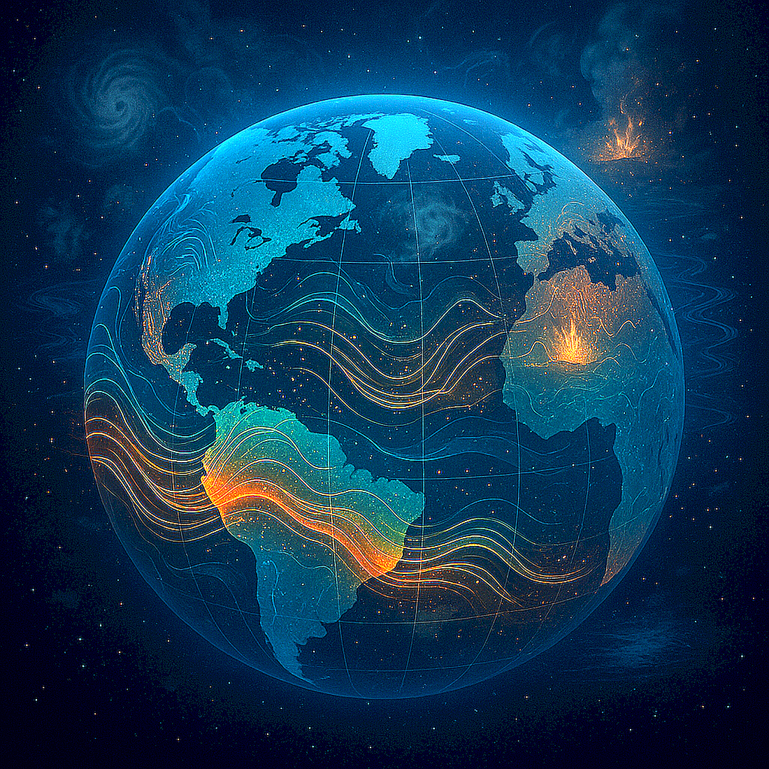 The Earth’s climate system operates as an open, far-from-equilibrium system in which temperature and pressure gradients drive atmospheric and oceanic circulations [