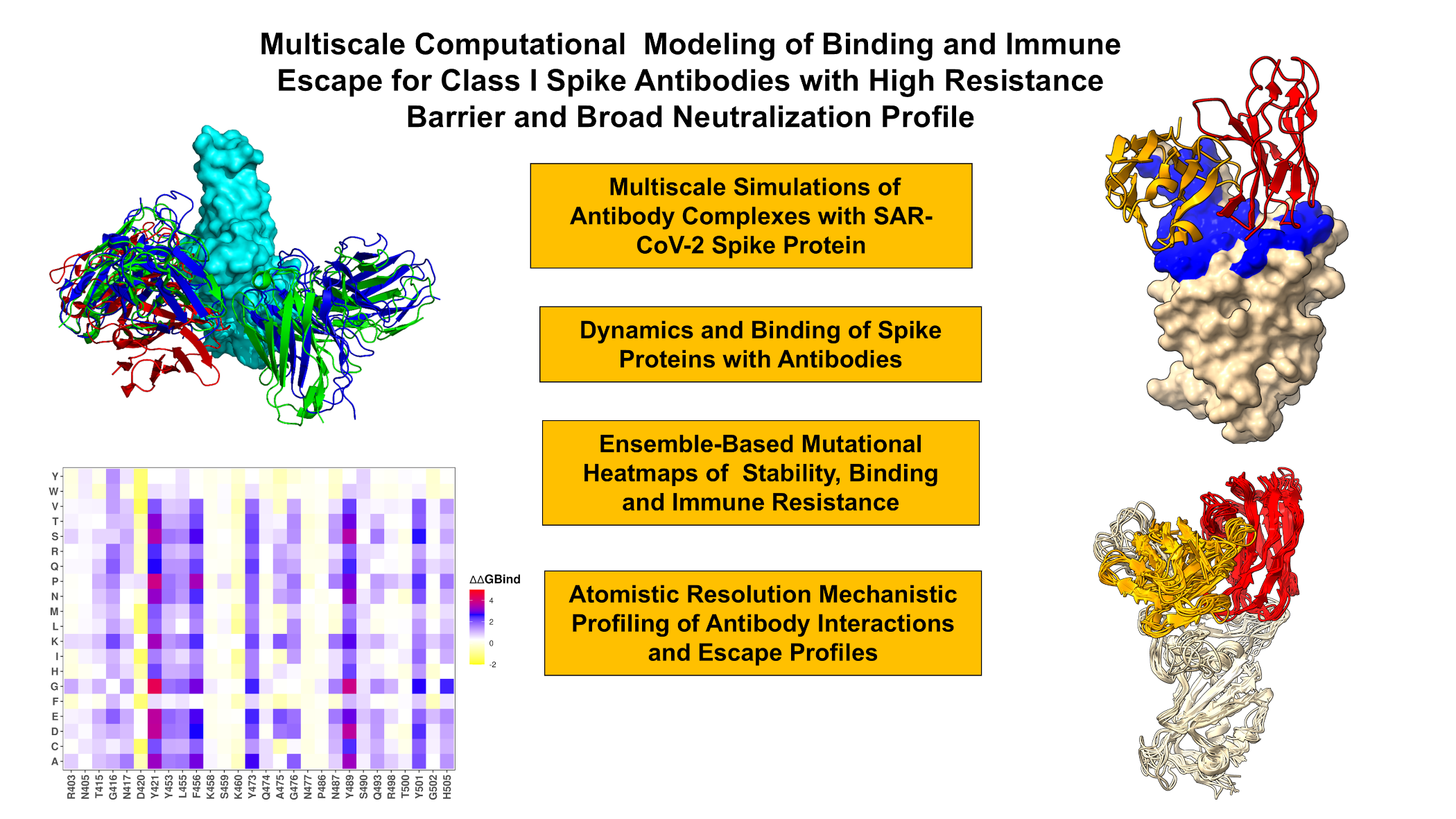 - Alshahrani, M.; Parikh, V.; Foley, B.; Verkhivker, G. Integrative Computational Modeling of Distinct Binding Mechanisms for Broadly Neutralizing Antibodies Targeting SARS-CoV-2 Spike Omicron Variants: Balance of Evolutionary and Dynamic Adaptability in Shaping Molecular Determinants of Immune Escape. Viruses 2025, 17, 741. [Google Scholar] [CrossRef]