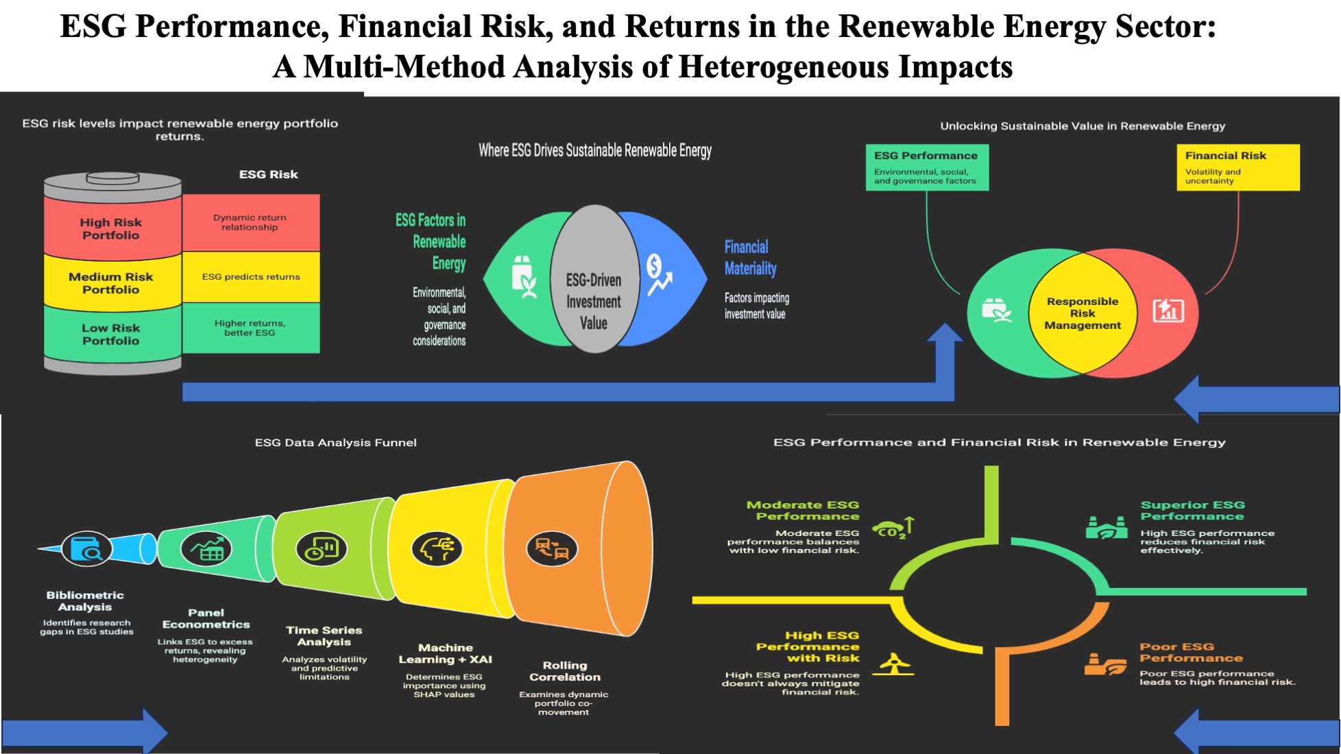 This study pursues five interconnected objectives to provide a comprehensive understanding of ESG, risk, and return dynamics in the renewable energy sector: