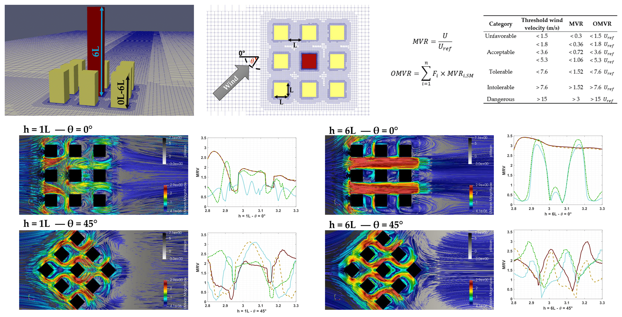 9] uses CFD to assess how lift-up building design influences pedestrian-level wind comfort across four building configurations under three wind directions, showing that it improves comfort in elevated and neighboring areas, particularly under oblique winds; and Nevers et al. [