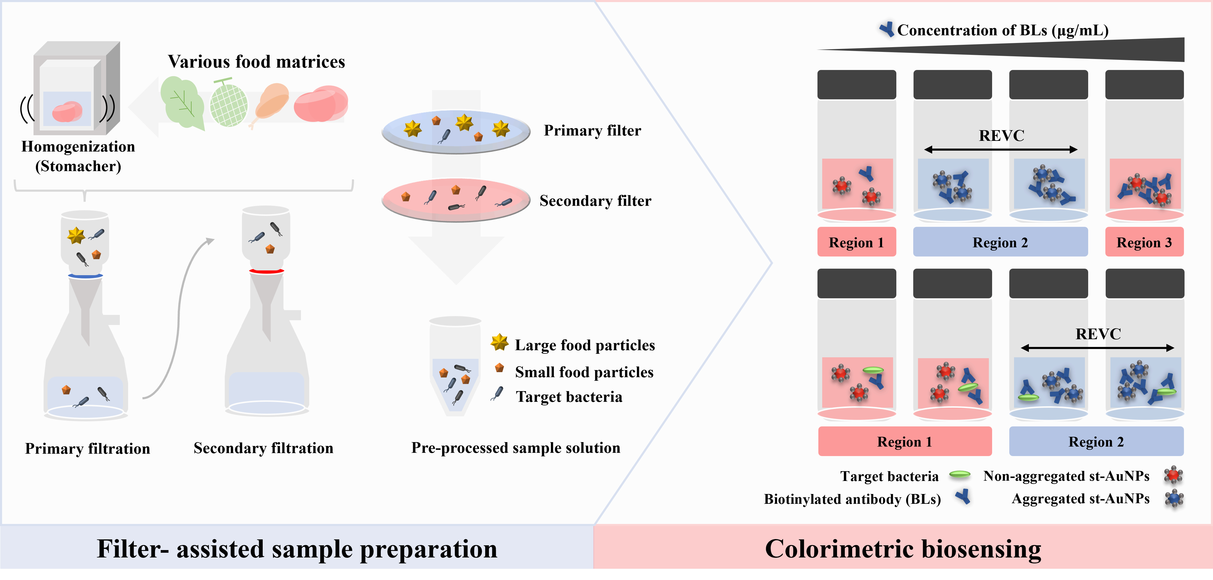 | Double filter method: GF/D and cellulose acetate filter with 0.45 μm-sized pore | Immunoassay-based colorimetric biosensor |