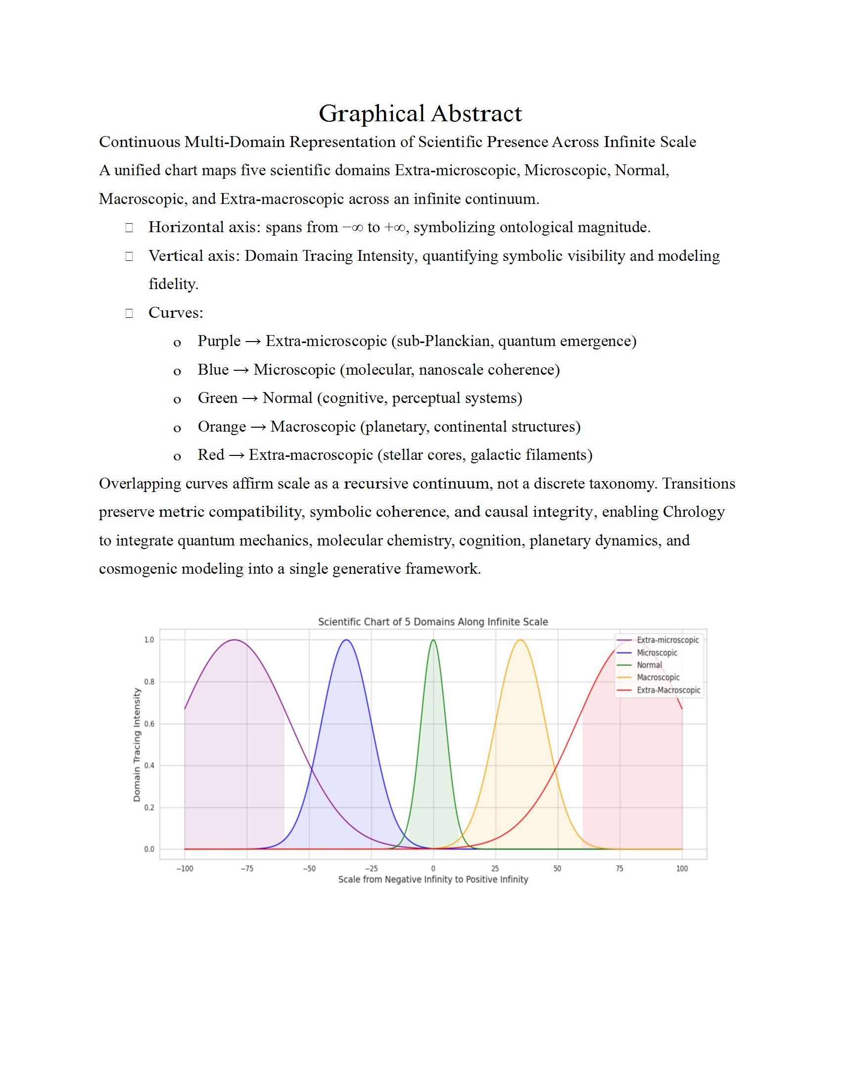 In Chrology, scale is thus not merely descriptive it is generative. It determines how entities emerge, interact, and persist. Each domain of scale whether molecular, planetary, or metaphysical possesses its own ontological grammar, yet remains entangled with others through symbolic resonance and energetic continuity. This framework allows for a unified understanding of presence and existence that is both scientifically grounded and philosophically expansive, offering a multidimensional lens through which reality can be studied, modeled, and experienced.