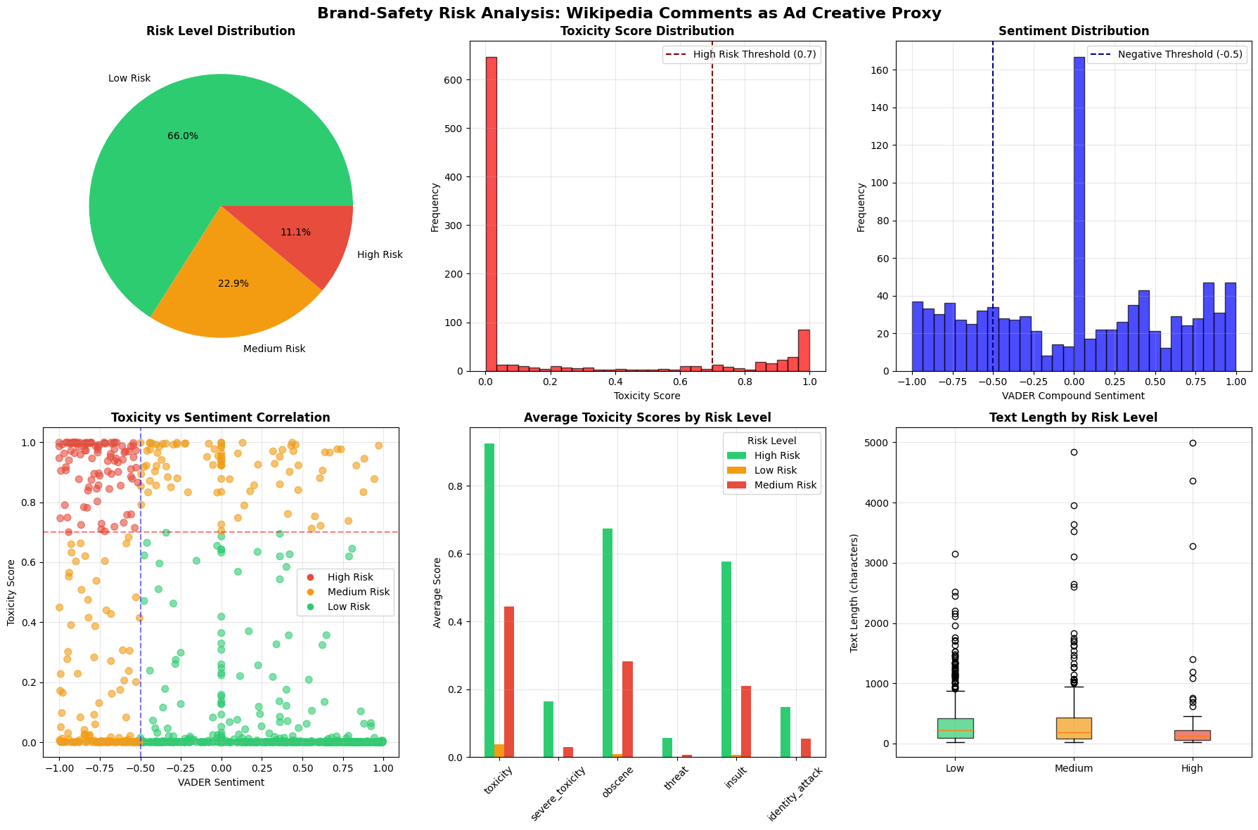 Multi-dimensional risk assessment (toxicity + sentiment)