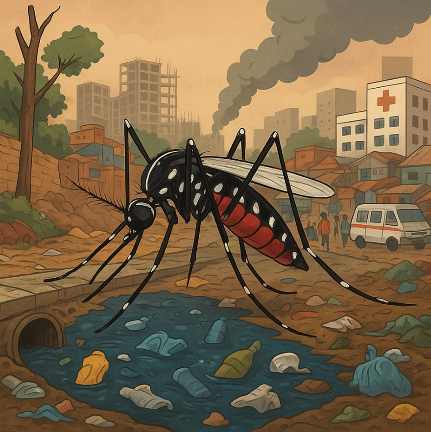 The recent dengue outbreaks, driven by shifting climate patterns, rapid urbanization, dense populations, insecticide resistance, and low public awareness, have severely strained Bangladesh’s healthcare system and economy. While climate change strongly shapes dengue (