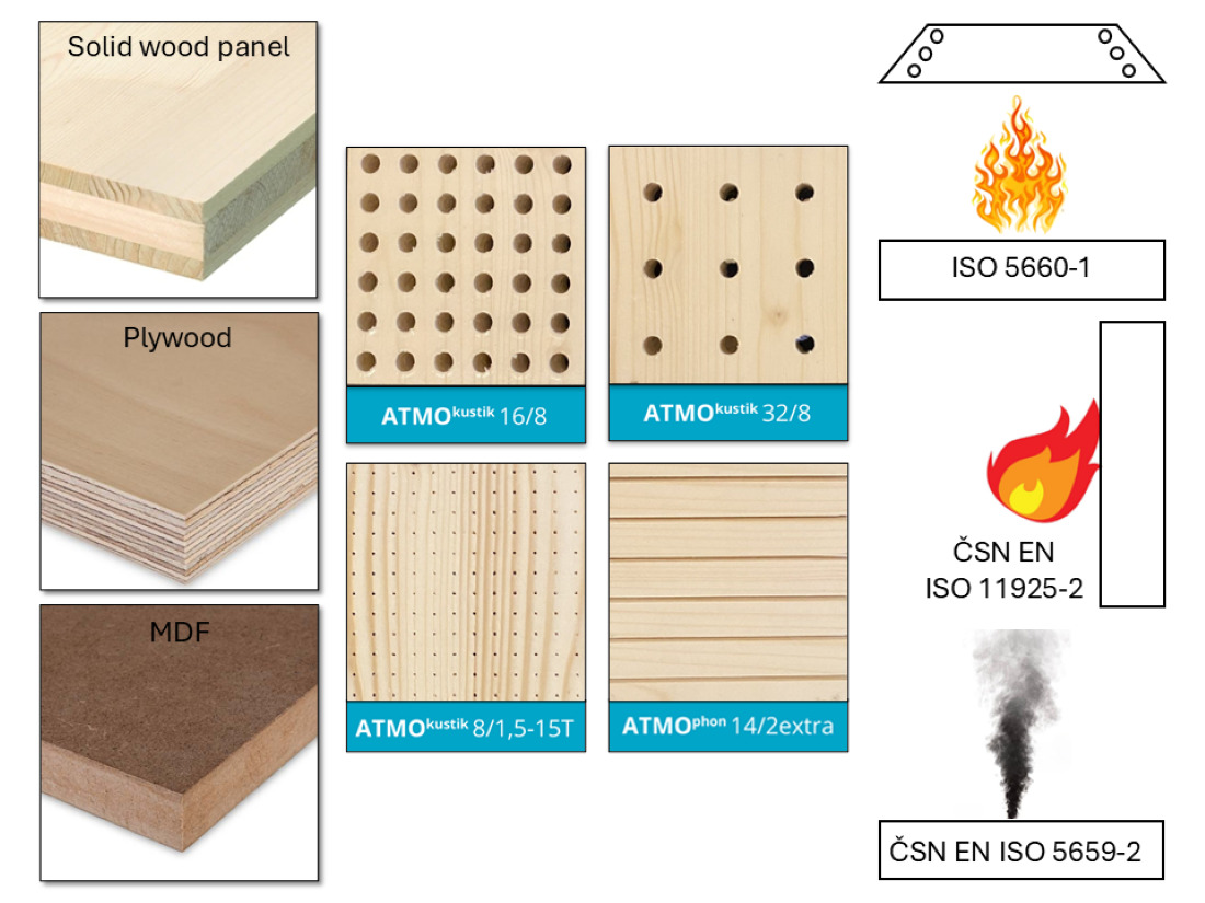 - Jaskolowski, W.; Łukaszek-Chmielewska, A.; Ogrodnik, P.; Sobczak, T. Evaluation of Maximum Specific Optical Density for Selected Wood Based Materials Using PN-EN ISO 5659:2017 Method. Annals of Warsaw University of Life Sciences - SGGW 2017, 100, 18–22. [Google Scholar]
