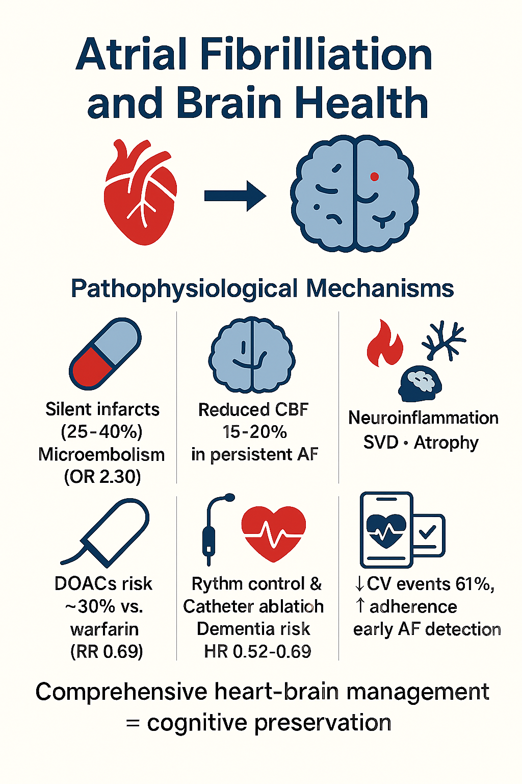 - Therapeutic interventions (anticoagulation, rhythm control, risk factor management) address distinct cognitive neuroprotection pathways