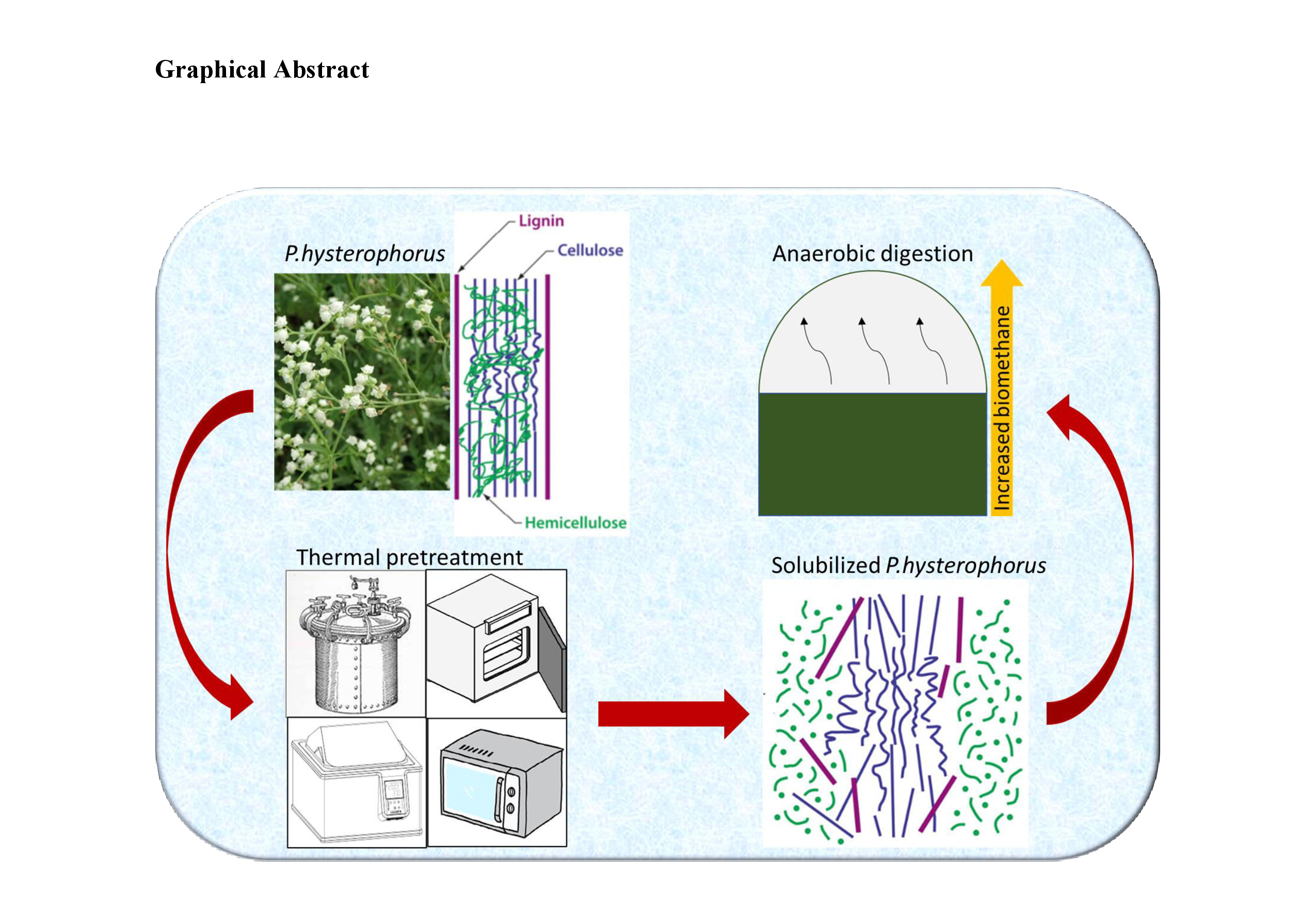 This study evaluated the influence of four thermal pretreatment techniques—autoclaving, hot air oven treatment, hot water immersion, and microwave irradiation—on Parthenium hysterophorus biomass to improve its biodegradability and biogas generation potential under batch anaerobic digestion. Among the investigated methods, hot air oven pretreatment at 110 °C for 90 minutes exhibited the most significant enhancement in biomass solubilization, as indicated by a 51.5% rise in soluble chemical oxygen demand (sCOD) and an increase in volatile fatty acids (VFAs) compared with the untreated control. These compositional improvements facilitated faster hydrolysis and led to a 25.73% higher cumulative methane yield in biochemical methane potential (BMP) assays. Structural analysis revealed pronounced alterations in the lignocellulosic matrix, with reductions in hemicellulose and partial delignification improving substrate accessibility. Complementary characterization using field emission scanning electron microscopy (FESEM), X-ray diffraction (XRD), and Fourier-transform infrared spectroscopy (FTIR) confirmed the disruption of crystalline cellulose regions and modification of functional groups, supporting the observed biochemical improvements. Collectively, the results demonstrate that hot air oven pretreatment is a practical and energy-efficient approach for enhancing the digestibility of P. hysterophorus biomass, promoting its utilization as a sustainable feedstock for renewable biogas production and environmental management of this invasive weed.