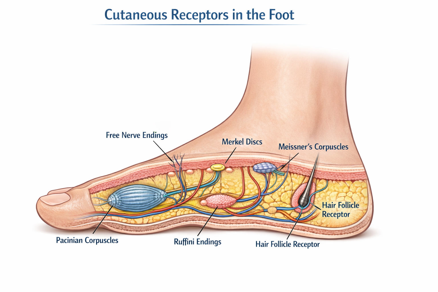 In much of the reflexology literature, the claim that the foot contains approximately 7,000 nerve endings has been widely disseminated and used as a foundational explanation for the therapeutic effects of plantar stimulation. However, this figure lacks verifiable anatomical and neurophysiological support and does not align with current principles of sensory neurophysiology.This article presents a critical review of this quantitative paradigm and proposes a shift in focus toward a functional understanding of the plantar nerve receptors involved in the sensory stimulation used in reflexology.From a neurophysiological perspective, the effectiveness of a stimulus does not depend on the number of nerve endings activated, but rather on the functional properties of nerve receptors, including their specialization, receptive field, depth, and adaptive capacity, as well as their integration within somatosensory afferent pathways.Plantar skin exhibits a highly specialized sensory organization consistent with its roles in weight-bearing and mechanical perception, involving multiple types of nerve receptors capable of transducing mechanical stimuli into meaningful neural signals. Within this framework, reflexology can be understood as a complementary therapy based on the functional activation of plantar nerve receptors and the central modulation of afferent information, without reliance on arbitrary or unverified numerical claims.