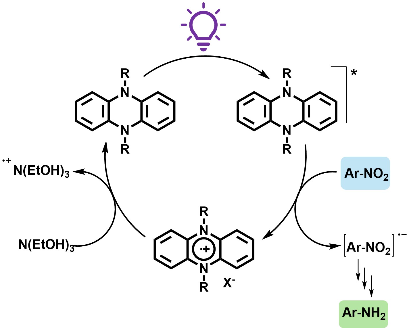 20] we propose the following mechanism for the photocatalytic reduction of nitro compounds using phenazine-based catalysts (