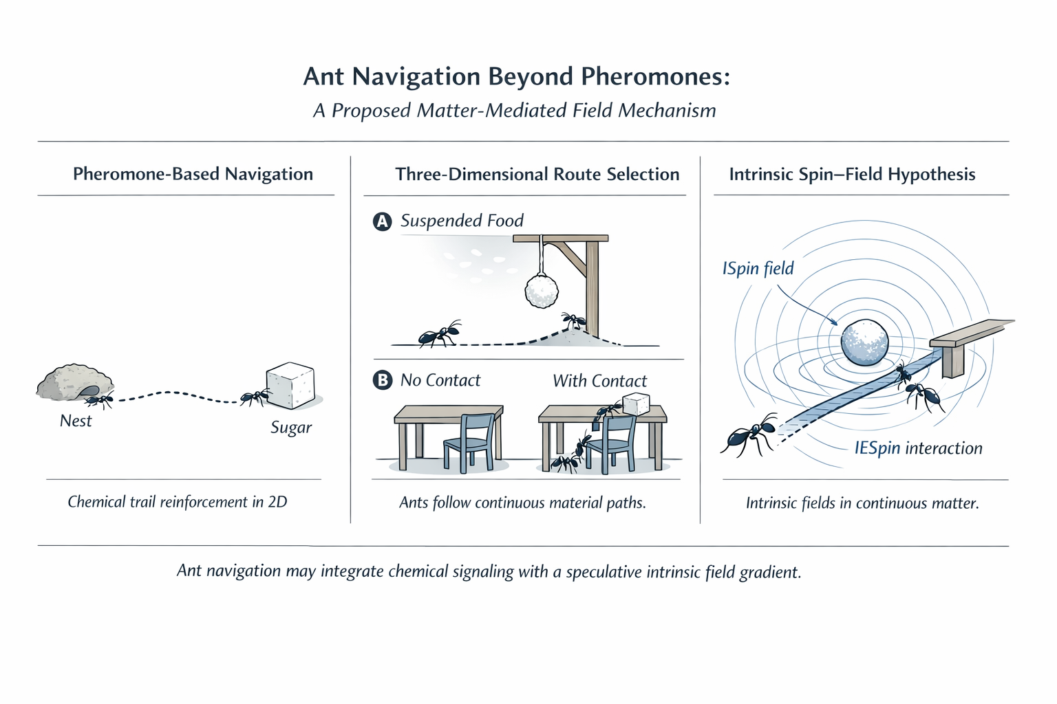At present, this model should be regarded as a theoretical proposition requiring substantial empirical validation. Its value lies not in replacing established biological theory but in motivating new experimental designs that probe the limits of purely chemical explanations. Future interdisciplinary research integrating physics, neurobiology, and behavioral ecology will be necessary to determine whether ant navigation relies solely on chemical communication or whether additional field-based mechanisms play a role.
