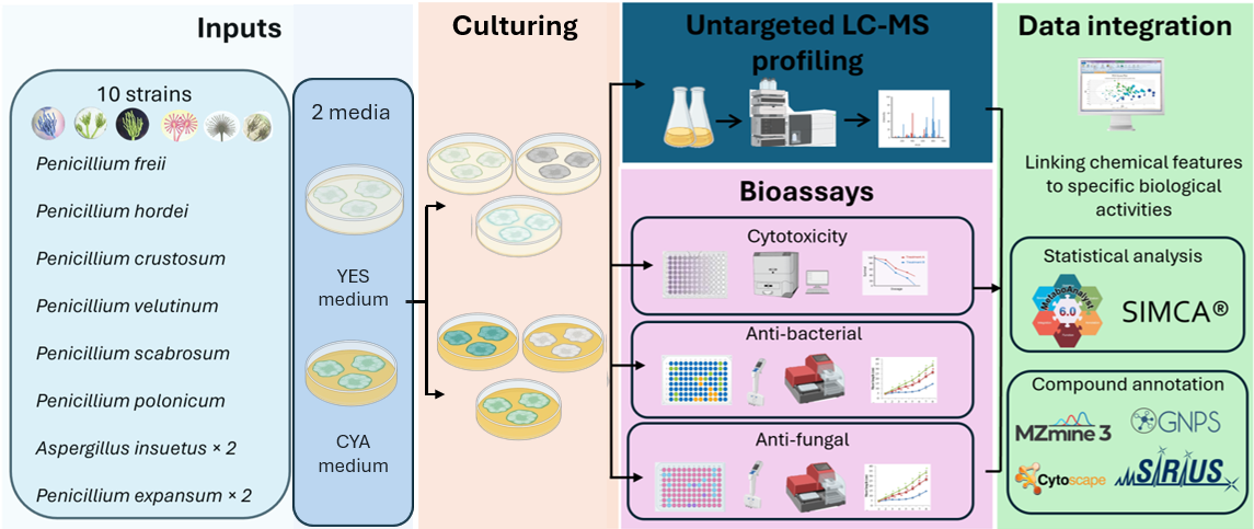Fungi represent a prolific source of structurally diverse secondary metabolites, yet the extent to which culture conditions reshape the metabolic profile and functional bioactivity remains incompletely understood. In this exploratory study, ten fungal strains cultivated in Yeast Extract Sucrose (YES) and Czapek Yeast Autolysate (CYA) media were analysed using untargeted LC-HRMS metabolomics. This was then combined with multivariate statistical modelling to evaluate medium-dependent metabolic variation and its relation to cytotoxic, antibacterial and antifungal activities. Global metabolic profiling revealed moderate but statistically significant medium-associated metabolite variation, with discriminant metabolites predominantly enriched under CYA conditions. Putative structural annotation suggested patterns consistent with differential regulation of isoprenoid-derived sterols, terpenoids, alkaloid-like metabolites and aromatic polyketides. While antimicrobial activities displayed a heterogeneous, strain-dependent pattern with limited correlation to individual metabolites, cytotoxic activity co-varied with metabolite composition in OPLS regression modelling. Sterols and terpenoid-related features emerged as major contributors to cytotoxicity. Given the absence of biological replication and the limited sample size inherent to this pilot study, all findings should be considered hypothesis-generating and interpreted within an exploratory framework. These results suggest that nutrient composition influences biosynthetic pathway activation while functional outcomes remain strongly dependent on strain-specific metabolic capacity. This work provides a systematic framework and targeted hypothesis for future investigations into condition-dependent fungal chemical diversity in natural product discovery.