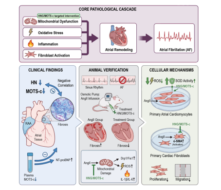 3.3. Administration of HNG or MOTS-c Attenuates AngII-Induced Atrial Fibrillation Susceptibility and Structural Remodeling in Mice