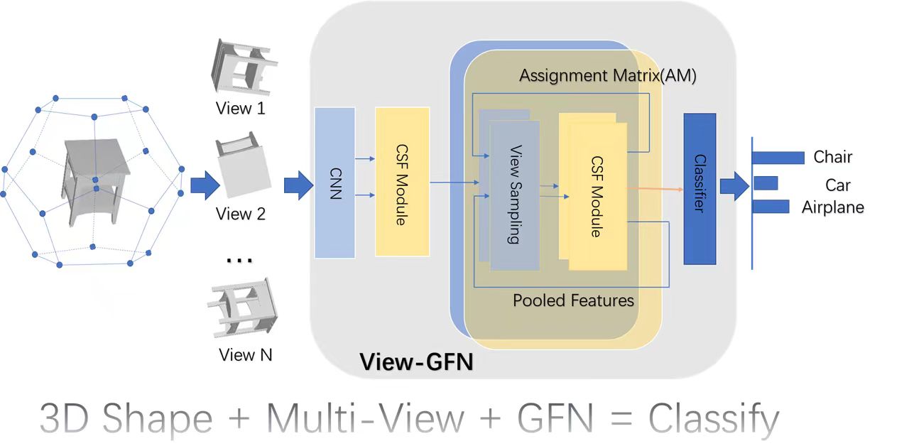 - Analysis: View-GFN achieves an mAP of 97.7% in the retrieval task, outperforming MVPNet (97.4%) and MVCVT (95.4%), and significantly surpassing the earlier GVCNN (85.7%). This indicates that the multi-scale features extracted by the CSF module are not only discriminative for classification but also possess excellent semantic clustering properties, enabling the generation of high-quality global shape descriptors.