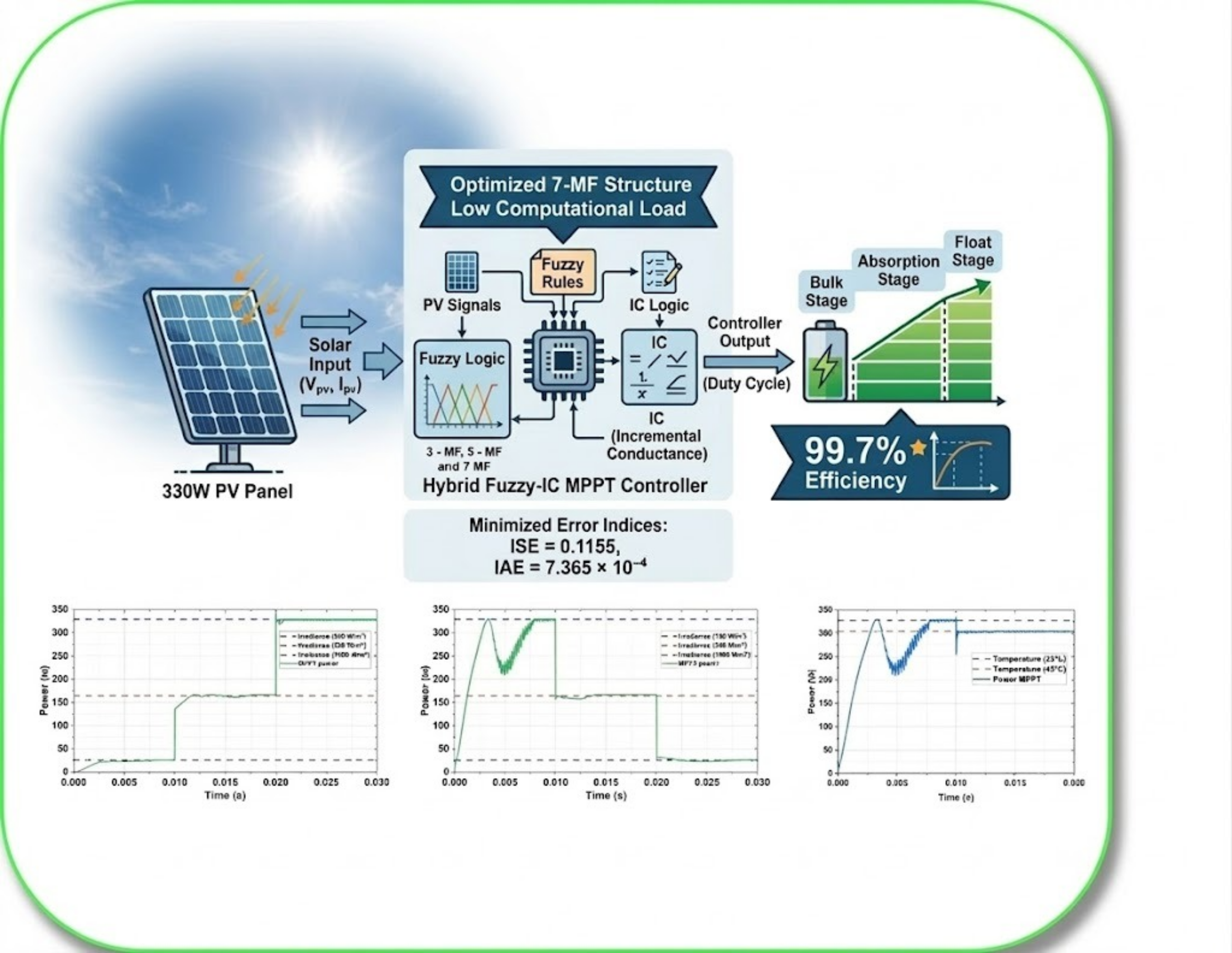 | MPPT algorithm | FLC+PO | FLC+IC (SInC/CSI) | FLC+PO+FSCC | FLC hybrid+IC |